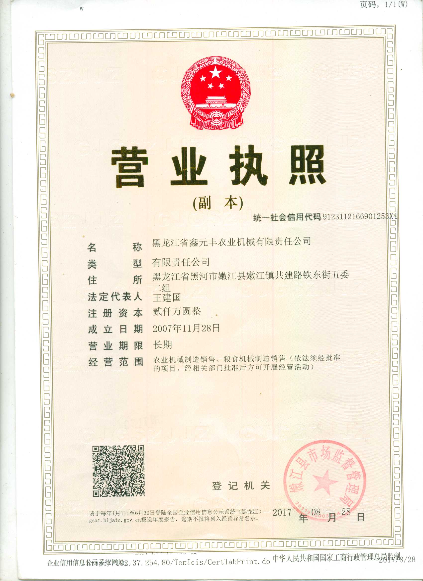 COPYRIGHT?2019 黑龍江省鑫元豐農(nóng)業(yè)機械有限責任公司